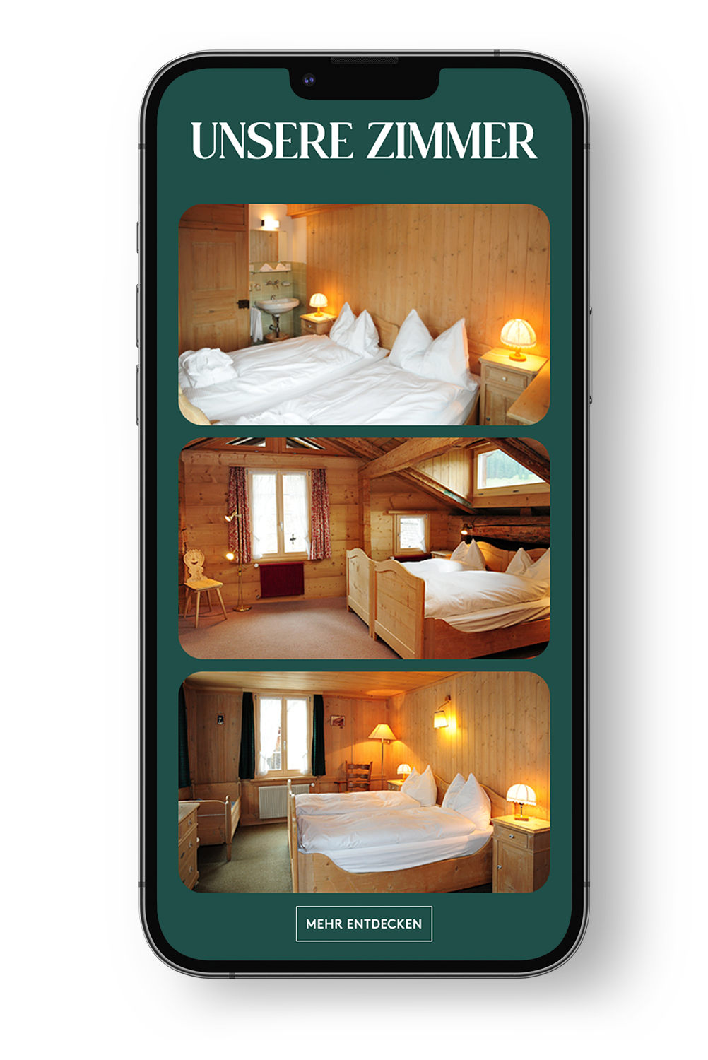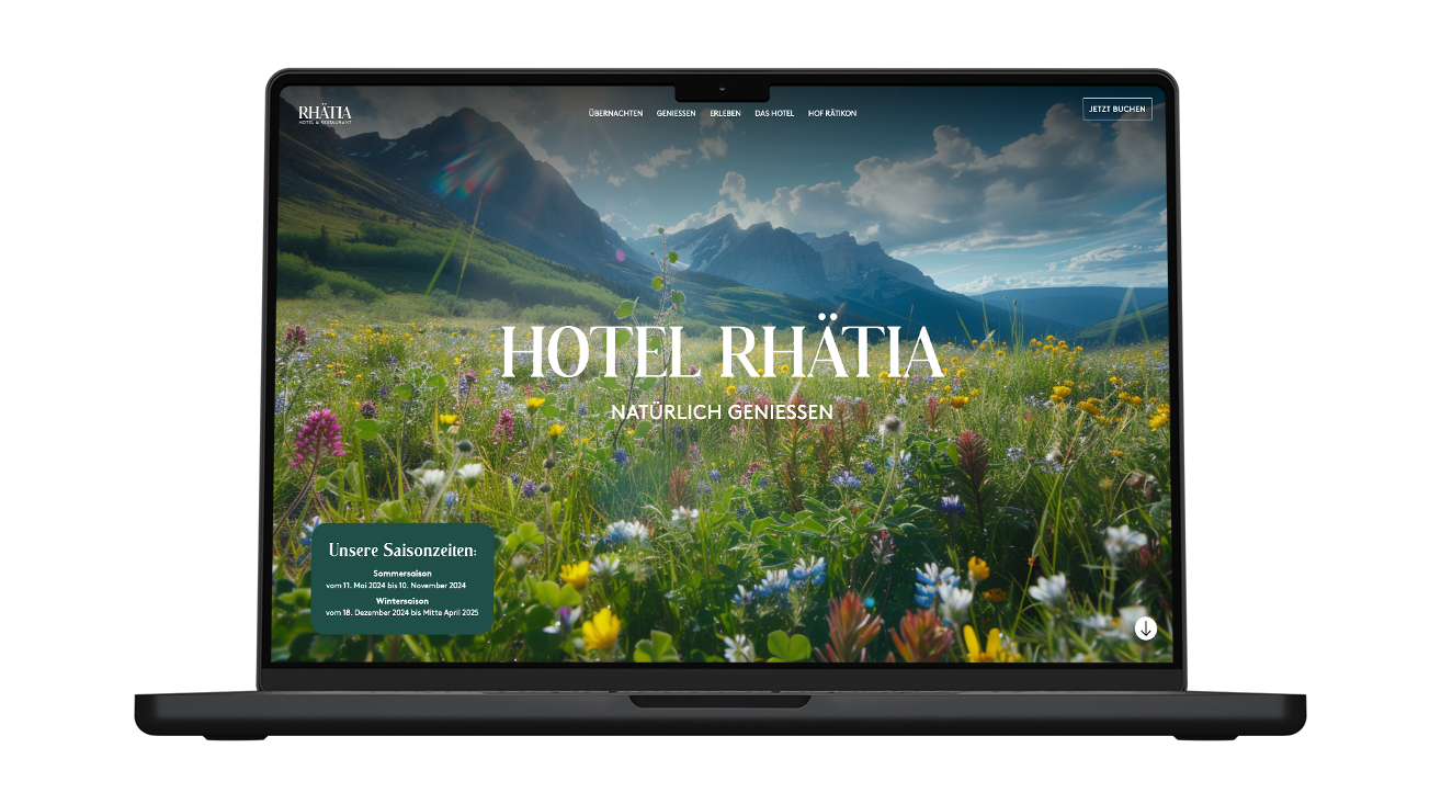 Unsere Mission bei der Gestaltung der Website war es, eine benutzerfreundliche und optisch ansprechende Plattform zu schaffen, die den Charme und die Gastfreundschaft des Hotel Rhätia einfängt. Die Farbpalette wurde bewusst in dunklen Grüntönen gehalten, um die alpine Landschaft und die natürliche Umgebung von St. Antönien widerzuspiegeln. Diese Farbwahl schafft eine beruhigende und gleichzeitig edle Atmosphäre.